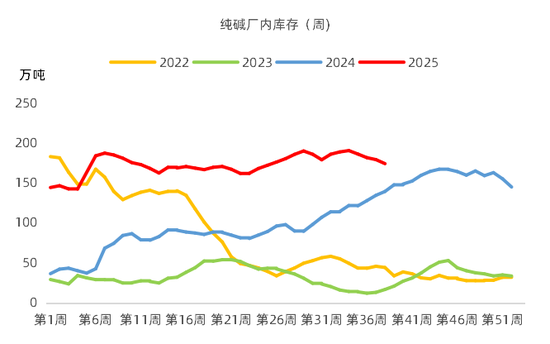 目前从基本面角度看,纯碱的确是有所改善,但程度仍较弱。供给端来看,预期方面最大的扰动还是阿拉善二期的兑现时点,但后期用水指标是否够一期、二期的总用量值得关注。此外,截至今年8月底,虽然产能基数相较于去年同期上涨超5%,但产量却几乎与去年同期持平,因此,1300以下,甚至1200以下的价格,已经触碰到纯碱行业的价格红线,在这基础上再次追空的性价比十分有限。后期即使阿拉善二期顺利投产,预计纯碱行业的实际产量增量也远小于产能增量。再结合“反内卷”的大背景,很多中小产能会加速退出。而在整体情绪环比改善以及上游企业订单边际好转的影响下,纯碱库存也是出现了久违的连续5周的去化,供给压力有所减轻。